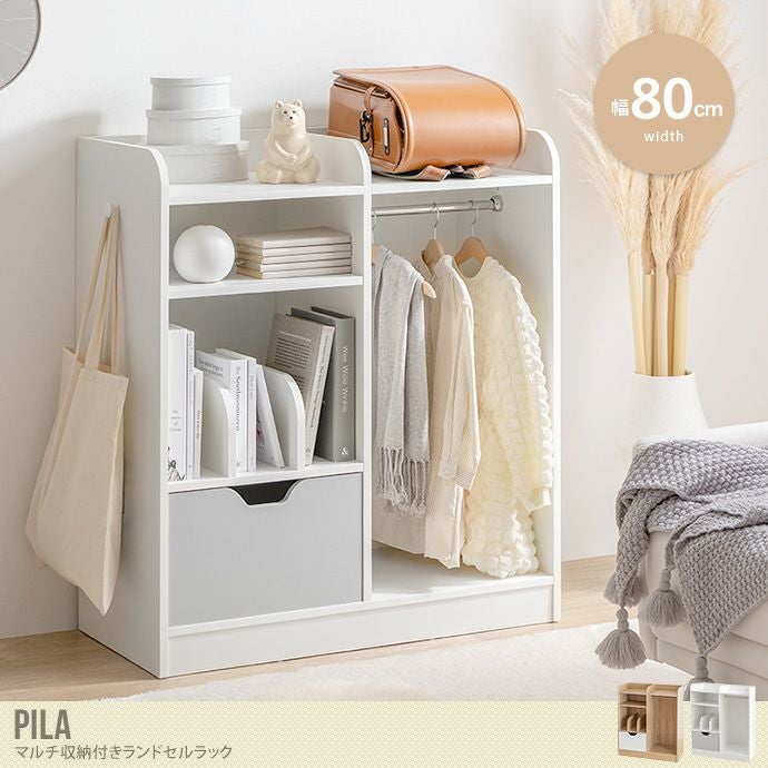 【送料無料】幅80 ランドセルラック キッズ収納 ハンガーラック 収納ラック ランドセル収納 ランドセル置き リビング収納 本棚 ハンガー 引き出し パイプ コンパクト 省スペース 引き出し付き 子供服 おもちゃ 絵本 ナチュラル/ホワイト