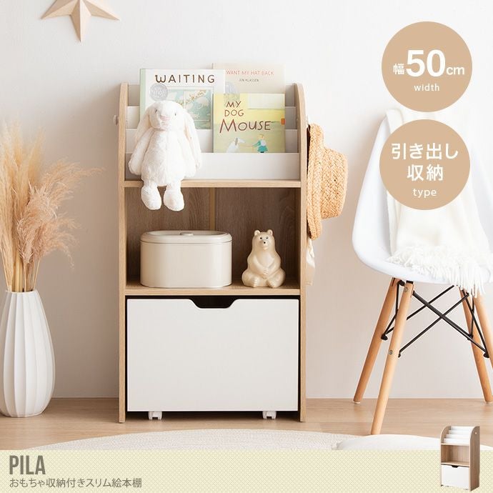 【送料無料】Pila ピラ 幅50 おもちゃ 収納 絵本棚 子供部屋 ブックラック 引き出し キャスター 書棚 女の子 男の子 大容量 お片付け キッズ コンパクト フック おもちゃ箱 リビング 玄関 ぬいぐるみ 入園 入学 出産祝い ナチュラル/ホワイト