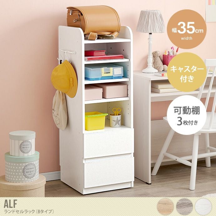 【送料無料】幅35 子供家具 キッズ収納 ランドセルラック 収納棚 絵本棚 棚 ランドセル収納 収納ラック 引き出し収納 おしゃれ おすすめ 高さ107 スリム 可動棚 キャスター付き サイドフック 引き出し かわいい 入学準備 木目 子供部屋 ナチュラル