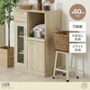 【送料無料】幅60 キッチン収納 食器棚 レンジ台 キッチンボード キッチンキャビネット 収納 キッチンラック レンジボード おしゃれ おすすめ コンパクト スリム コード穴 引き出し ガラス扉 スライド収納 可動棚 ロー 木目 木製 ホワイトオーク