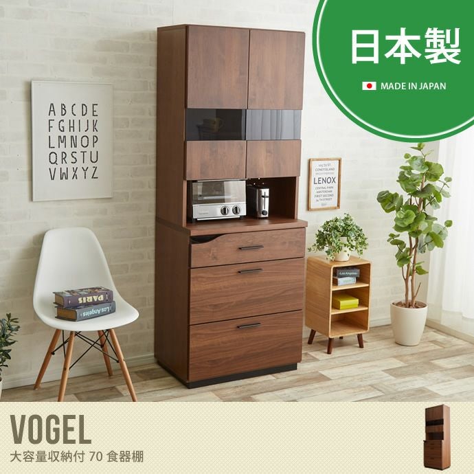 【送料無料】Vogel キッチン収納 収納 キッチン 食器棚 レンジ台 木製 スライド 完成品 食器収納 引き出し オシャレ 無垢材食器棚 ブラウン