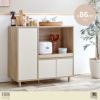 柔らかい木目調シートのナチュラルと明るいホワイトから成るバイカラーがおしゃれな『Erin(エリン)』シリーズのレンジ台。スライドトレー・可動棚式扉収納・両開き扉収納の3種の収納スペースに、幅を取る家電からキッチン小物まで幅広く収納していただけます。レンジ台の素材には、水にぬれることや蒸気が出る家電を置くことを想定して、メラミン加工を施しています。豊富な収納力を備えながらもコンパクトなサイズ感なので、スペースに余裕のないお部屋やワンルームにもピッタリです。