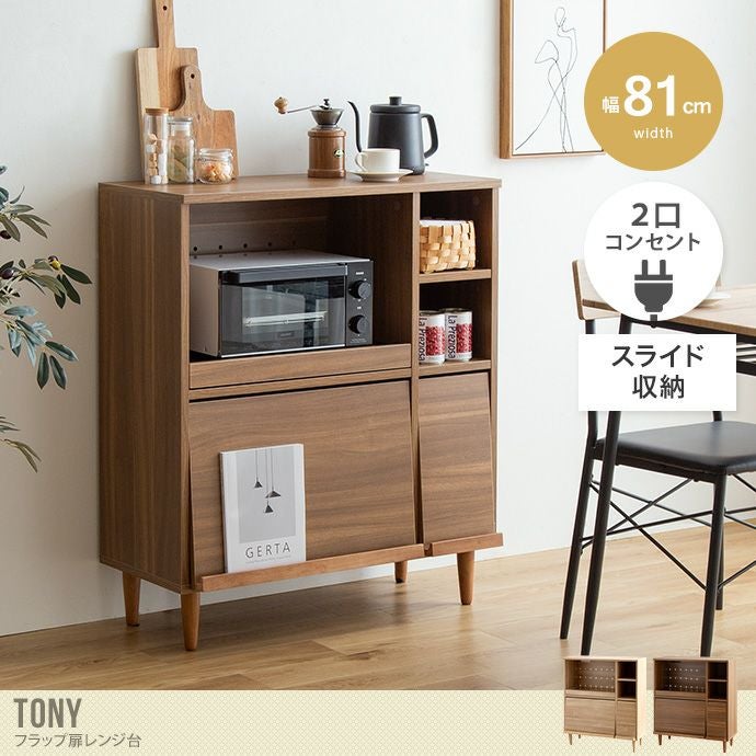 【送料無料】Tony トニー 幅81 レンジ台 レンジラック 電子レンジ レンジボード 炊飯器 食器棚 オーブン コンセント 収納 家電 キッチン カウンター トースター スライドテーブル フラップ扉 可動棚 カップボード 一人暮らし 小さい ナチュラル
