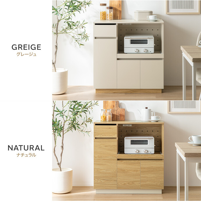 【送料無料】Pom ポム 幅80 レンジ台 食器棚 収納 キッチンカウンター キッチン収納 おしゃれ おすすめ 安い 台所 引き出し 可動棚 キャスター付き かわいい 一人暮らし ワンルーム キッチンラック ワゴン ロー コンパクト スライド棚 グレージュ