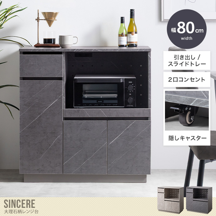 【送料無料】Sincere シンシア 幅80 レンジ台 食器棚 収納 キッチンカウンター キッチン収納 おしゃれ おすすめ 安い 台所 引き出し 可動棚 キャスター付き かわいい 一人暮らし キッチンラック ワゴン キッチン家電 コンパクト スライド棚 ストーングレージュ