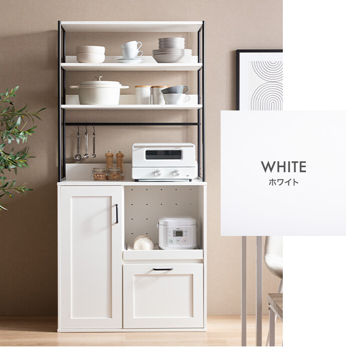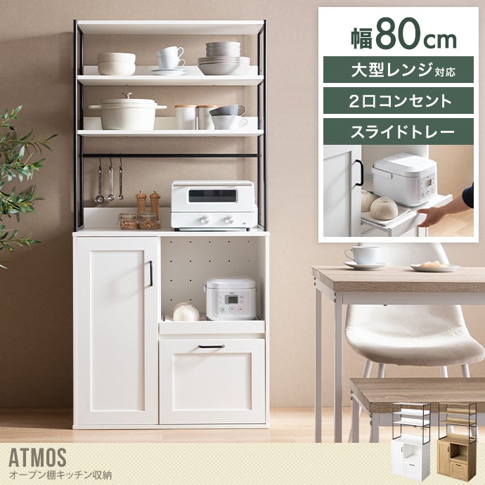 【送料無料】Atmos アトモス 幅80 キッチン収納 食器棚 キッチンボード レンジ台 収納 キッチンラック おしゃれ おすすめ 安い 台所 引き出し 可動棚 コンパクト 大容量 コンセント かっこいい 家電 炊飯器 棚 食器 2人暮らし 同棲 ホワイト