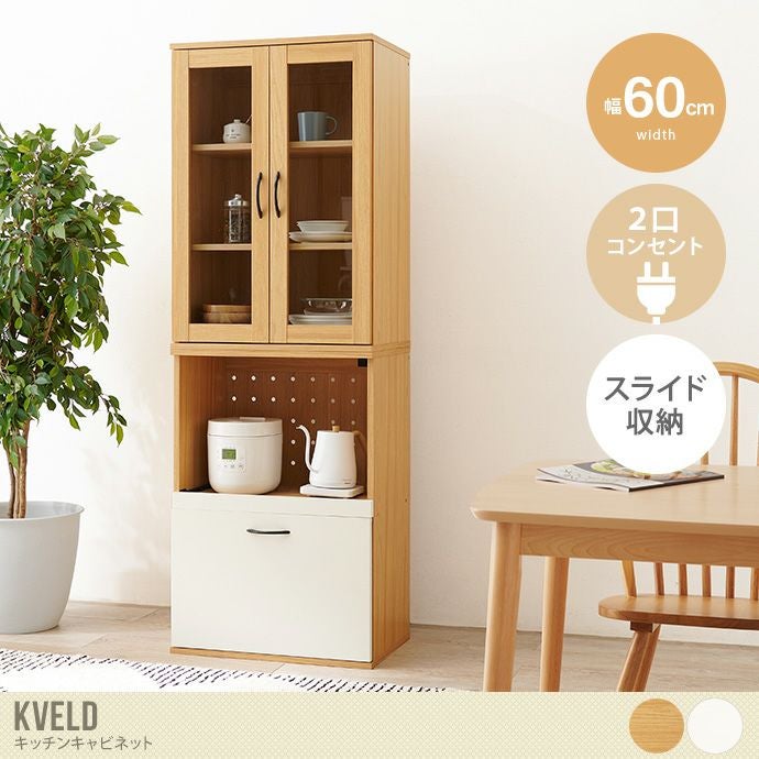 【送料無料】幅60 キャビネット キッチン 食器棚 収納 ラック 引き出し スライド ハイタイプ スリム 高さ174cm ストック 可動棚 2口コンセント 通気孔 穴 連結金具 大容量 木目 ディスプレイ棚 システム ナチュラル