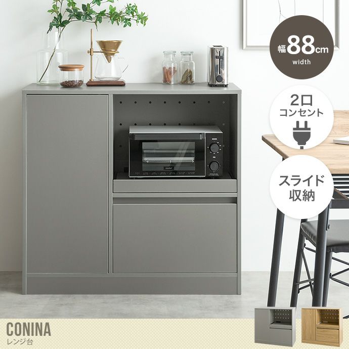 他の画像を見る 【送料無料】Conina コシーナ 幅88 レンジ台 ラック キッチンボード カップ 食器棚 収納 カウンター コンセント付き 2口 家電 置き台 ワゴン ダイニング 食器入れ 可動棚 引き出し オープンラック ストック 一人暮らし ワンルーム グレー 販売価格 ¥ 15,999 税込 送料込 カートに入れる お気に入りに登録する