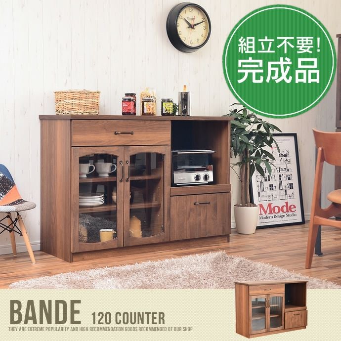 落ち着いたブラウンカラーとシンプルなデザインで人気のBandeシリーズ。レンジ収納が付いていて、単身者の方からファミリー世帯の方まで使えるキッチンカウンター。