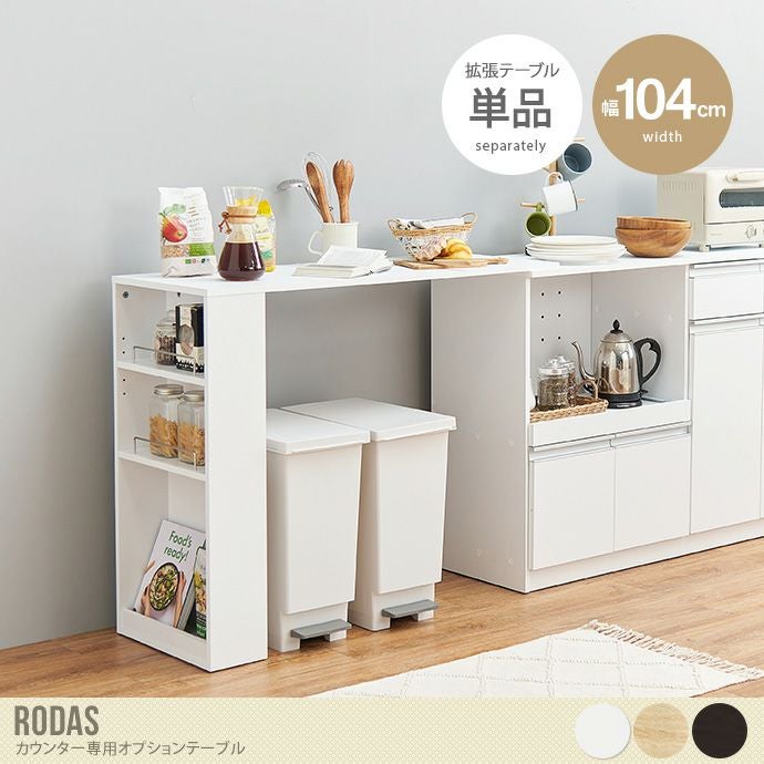 幅104 カウンター キッチンカウンター 専用オプションテーブル VKC-7150対応 VKC-7151対応 拡張テーブル 単品 専用カウンター のせるだけ 簡単設置 組立式 木目 作業スペース スライド棚 ホワイト