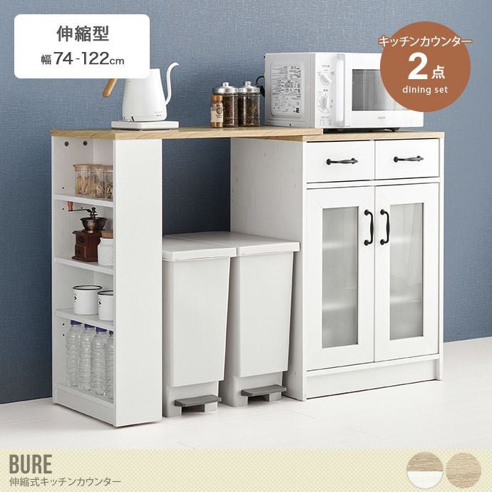 【送料無料】幅74 幅122 キッチン収納 キッチンカウンター キッチンボード レンジ台 キッチンラック キャビネット 作業台 扉収納 木目調 可動棚 3cmピッチ 扉付き 引き出し 拡張テーブル 伸縮式 キッチン 台所 ナチュラル/ホワイト