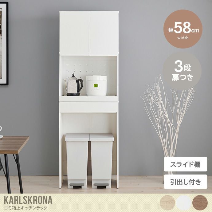 他の画像を見る 【送料無料】幅58 キッチンラック ゴミ箱上 レンジ台 カップボード 食器棚 スライド棚 引き出し 扉付き 3段 ゴミ箱 ダストボックス 一人暮らし デッドスペース 北欧 ナチュラル ヴィンテージ キッチン ダイニング おしゃれ 人気 新生活 ナチュラル 販売価格 ¥ 29,420 税込 送料込 カートに入れる お気に入りに登録する