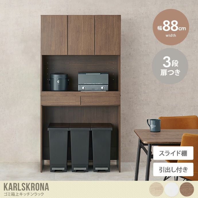 他の画像を見る 【送料無料】幅88 キッチンラック ゴミ箱上 レンジ台 カップボード 食器棚 スライド棚 引出 引き出し 3段 ゴミ箱 ダストボックス 一人暮らし デッドスペース 北欧 ナチュラル ヴィンテージ キッチン ダイニング おしゃれ 人気 新生活 ナチュラル 販売価格 ¥ 33,480 税込 送料込 カートに入れる お気に入りに登録する