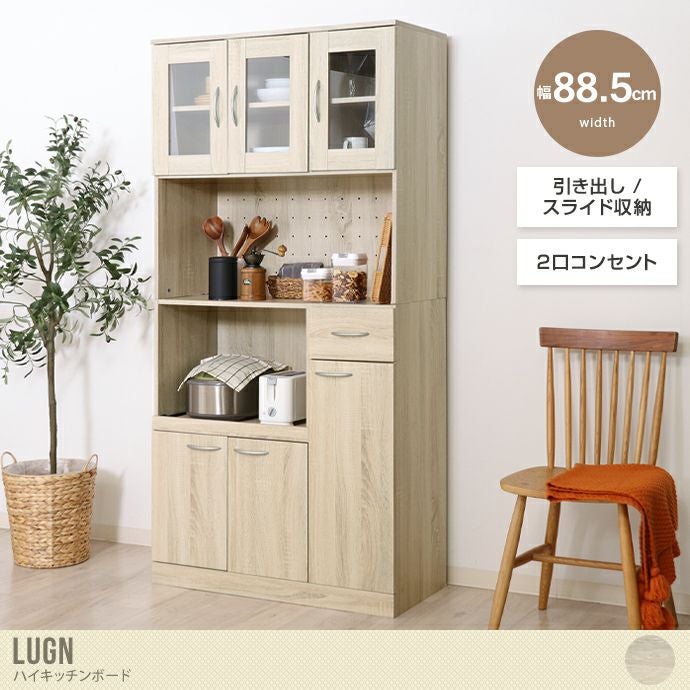 他の画像を見る 【送料無料】幅88.5 キッチン収納 食器棚 キッチンボード レンジボード 収納 レンジ台 キッチンキャビネット カップボード おしゃれ おすすめ スリム 大容量 可動棚 ガラス扉 コンセント付き 2口 通気孔 木目 木製 家電 ホワイトオーク 販売価格 ¥ 33,170 税込 在庫切れ 送料込 カートに入れる お気に入りに登録する