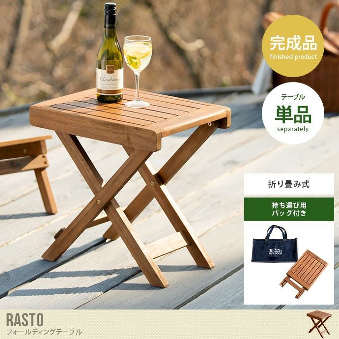 オイル仕上げの美しいアカシア天然木を贅沢に使用した『Rasto(ラスト)』シリーズのフォールディングテーブル。温かみ溢れる木目が、居心地のいい癒しの空間を演出します。コロンとしたコンパクトデザインは、チェアのサイドやメインテーブルの補助など、ちょっとした物を置きたい時に最適です。また、持ち運びの際は、折り畳んで専用の付属バッグに入れて持ち運び可能なので、アウトドアやキャンプに持って行く際も楽々です。