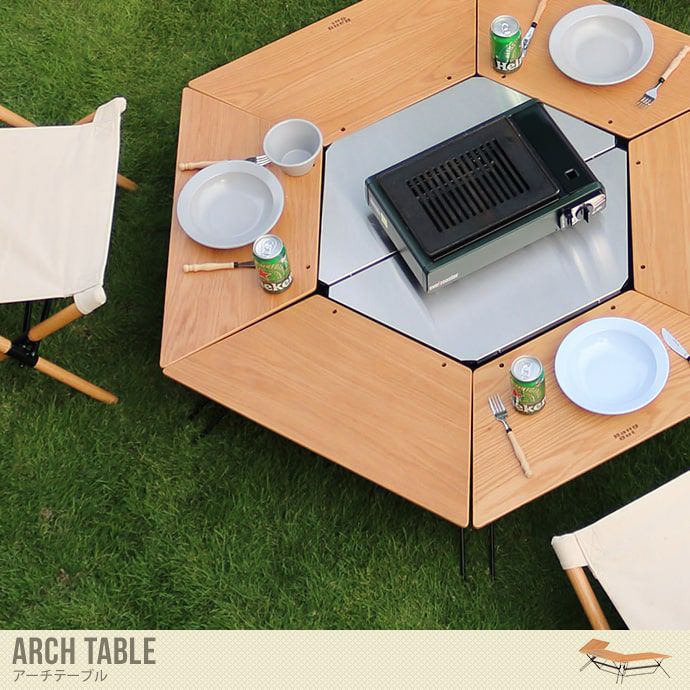 Arch Tableはテーブルそれぞれが自立できるので人数や使用目的に合わせてアイデア次第でレイアウト が自由自在。FRT Arch Tableは単体でも自立しますが、隣り合うテーブル同士を連結して使用する事も可能です。
