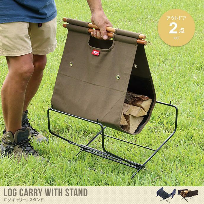 焚火や薪ストーブ、暖炉の側で薪をストックできる適度な高さが使いやすいスタンド。薪の束を楽に持ち運べるログキャリーをそのままフレームにセッティングする事が可能です。直接地面に薪が触れないので、地面の湿気から薪を守ってくれます。