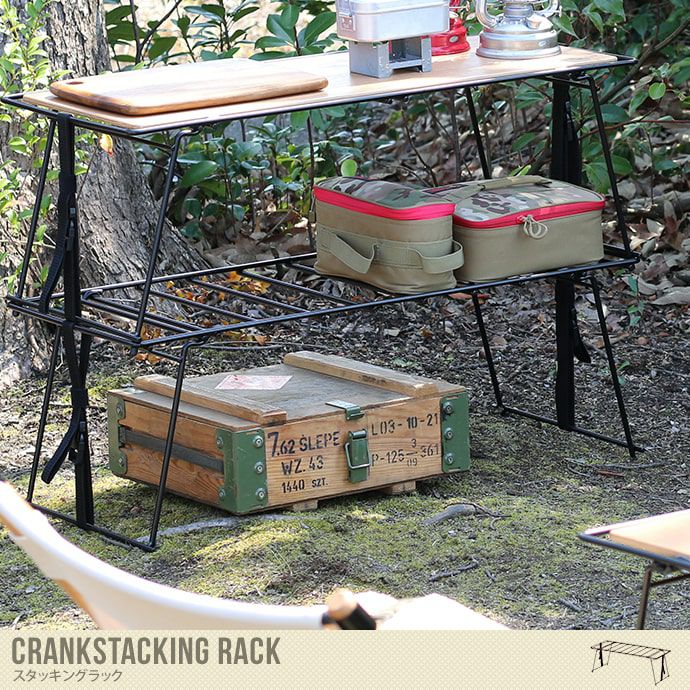 収納量に合わせて3段まで重ねて増設が可能な便利ラック。Crankシリーズは、サイト内をシンプルかつトータル的にコーディネート出来るのが特徴的なデザイン。