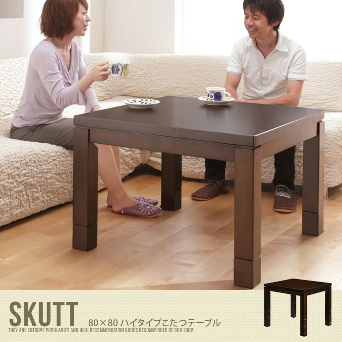 【送料無料】Skutt 80×80 ハイタイプこたつテーブル こたつ 炬燵 こたつ単品 継ぎ脚 高さ調節 ブラウン