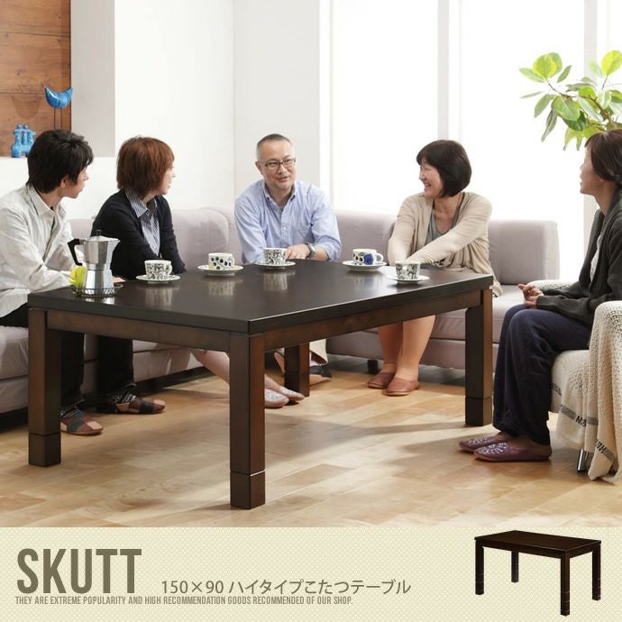 【送料無料】Skutt 150×90 ハイタイプこたつテーブル こたつ 炬燵 こたつ単品 継ぎ脚 高さ調節 ブラウン
