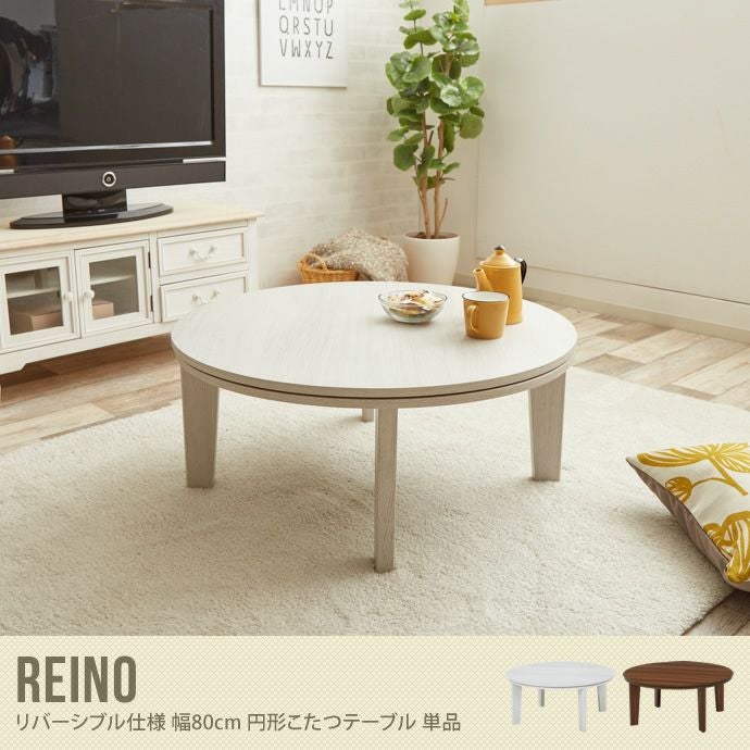 【送料無料】Reino こたつテーブル 単品 リバーシブル こたつ テーブル 幅80 円形 オシャレ シンプル 本体 石英管ヒーター ホワイト