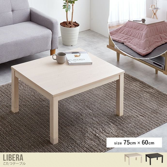 【送料無料】【天板 75cm×60cm】こたつテーブル こたつ コタツ 炬燵 テーブル 長方形 座卓 リビングこたつ ちゃぶ台 継脚付き モダン 北欧 木製 ホワイトウォッシュ ブラック Libera リベラ ホワイトウォッシュ