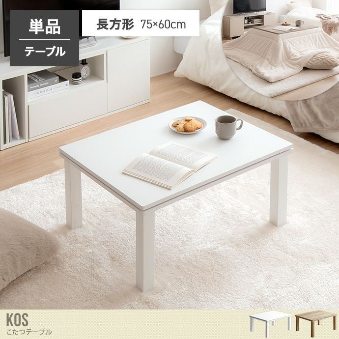【送料無料】75cm×60cm こたつ こたつテーブル 長方形 コタツ リビング 幅75 一人暮らし 一人用 ソファ 机 省スペース ロー センター 韓国 インテリア 北欧 コンパクト オールシーズン 薄型ヒーター ホワイト