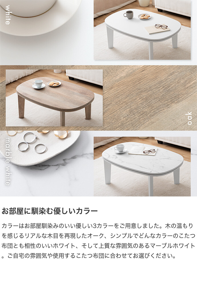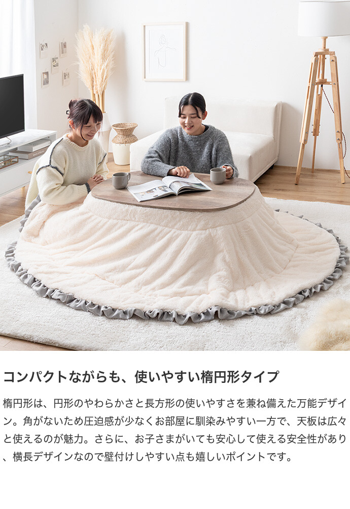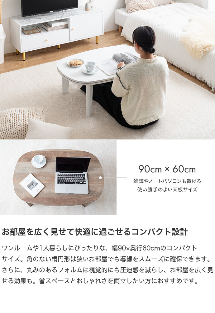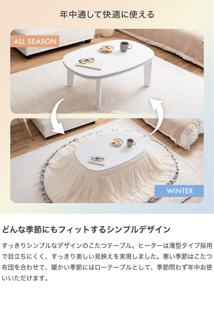 【送料無料】90cm×60cm こたつテーブル こたつ テーブル 炬燵 机 コタツ 電気こたつ おしゃれ おすすめ 安い 楕円 省スペース コンパクト リビング 一人暮らし ワンルーム ソファ 省エネ 節約 オールシーズン 年中 ホワイト