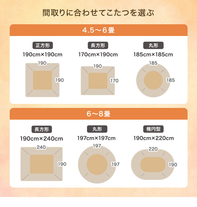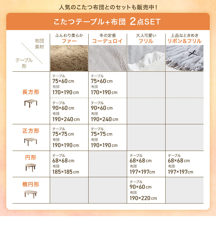 【サイズ】75cm×75cm75cm×60cm90cm×60cm68cm×68cm(円形)90cm×60cm(楕円形)
