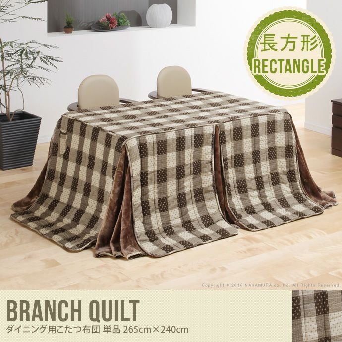 【送料無料】Branch quilt こたつ布団 265×240 ダイニング用 ボア付 ポケット付 チェック柄 保温 しじら織 素朴 かわいい ブラウン