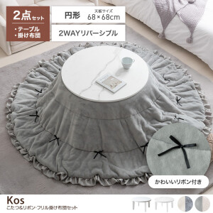 他の画像を見る 【送料無料】68×68 197×197 こたつセット こたつテーブル こたつ布団 2点セット コタツ 炬燵 机 円形 丸型 フリル付き リバーシブル 毛布 薄掛け 丸い 洗える ファー 薄手タイプ 小さい センターテーブル ローテーブル 本体:ホワイト×布団:アイボリー 販売価格 ¥ 22,998 税込 送料込 カートに入れる お気に入りに登録する