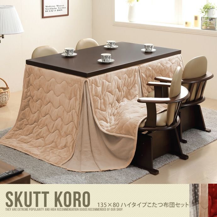 【送料無料】Skutto koro 135×80 ハイタイプこたつ布団セット こたつ 炬燵 布団付き 椅子付き しじら織り