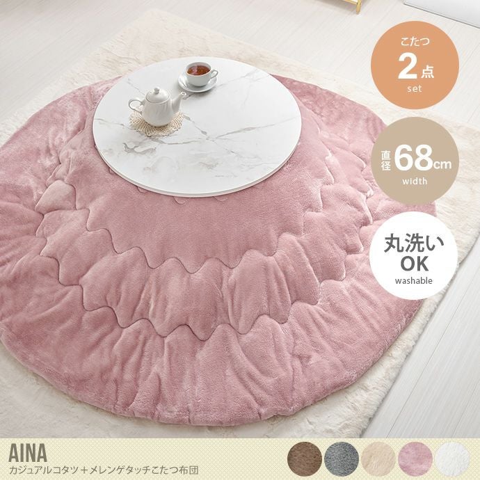 お部屋に馴染みやすい木目調のテーブルと柔らかくふんわりとした触感が気持ちいい『Aina(アイナ)』こたつ2点セット。テーブルはコンパクトサイズで、スペースを取らず寒い冬を快適に過ごすことが可能。また、こたつ布団は思わず頬ずりしたくなるような極上の仕上がりで、気持ちのいい温もりが身体を優しく包み込みます。また洗濯機で洗えるためお手入れも簡単。いつでも清潔に使用可能です。