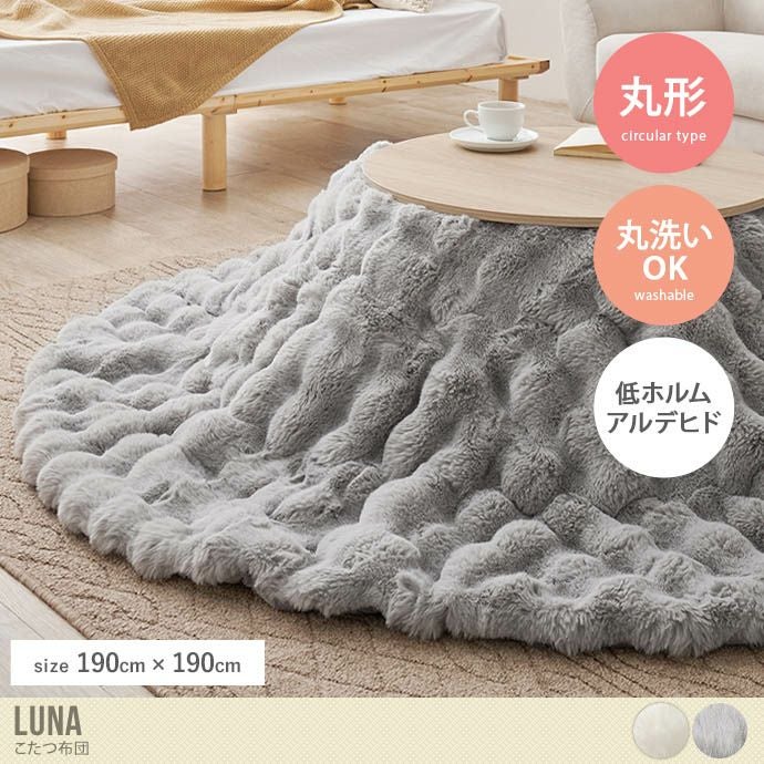 ぽこぽことした見た目がかわいい『Luna(ルナ)』こたつ布団。うさぎの毛並みを表現した贅沢なラビットファー調のふわふわ生地を採用。うっとりするようななめらかな肌触りで優しく身体を包み込みます。また裏地には保温性・保湿性に優れているフランネル生地を使用。寒い冬もぽかぽか快適にお過ごしいただけます。さらに洗濯機で丸洗いができるため、汚れても安心。いつでも清潔にお使いいただけます。