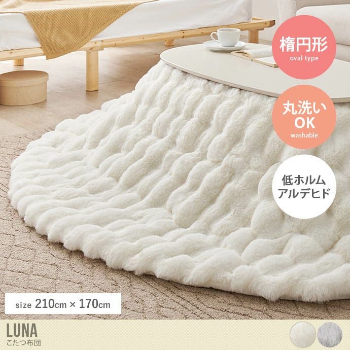 ぽこぽことした見た目がかわいい『Luna(ルナ)』こたつ布団。うさぎの毛並みを表現した贅沢なラビットファー調のふわふわ生地を採用。うっとりするようななめらかな肌触りで優しく身体を包み込みます。また裏地には保温性・保湿性に優れているフランネル生地を使用。寒い冬もぽかぽか快適にお過ごしいただけます。さらに洗濯機で丸洗いができるため、汚れても安心。いつでも清潔にお使いいただけます。