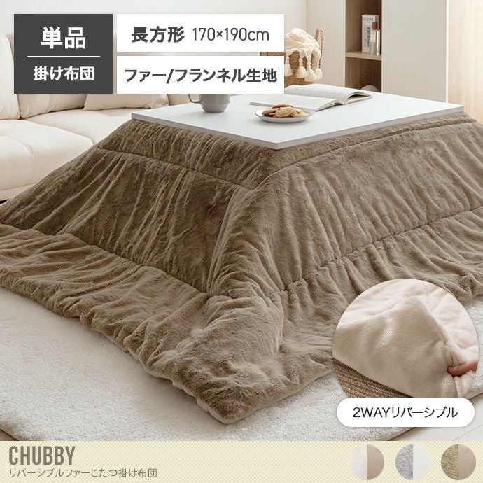 【送料無料】Chubby チャビー 170cm×190cm こたつ布団 長方形 掛け布団 リバーシブル 薄掛け 丸洗い 洗濯可 一人暮らし 一人用 韓国 インテリア 北欧 コンパクト 省スペース 布団 可愛い テーブル用 カジュアル スローケット アイボリー