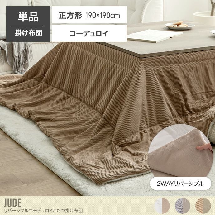 【送料無料】Jude ジュード 190cm×190cm こたつ布団 コタツ布団 炬燵布団 正方形 コーデュロイ リバーシブル 毛布 こたつ掛け布団 薄掛け 軽量 洗濯可 洗える 上掛け リビング ダイニング 一人暮らし 省スペース コンパクト 薄手 ミニ 小さい アイボリー