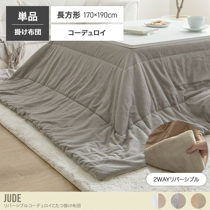 【送料無料】Jude ジュード 170cm×190cm こたつ布団 コタツ布団 炬燵布団 長方形 コーデュロイ リバーシブル 毛布 こたつ掛け布団 薄掛け 軽量 洗濯可 洗える 上掛け リビング ダイニング 一人暮らし 省スペース コンパクト 薄手 ミニ 小さい アイボリー