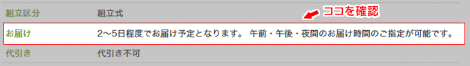また大型商品のお届けは、18時以降の夜間配達のご希望に添いかねる場合がございます。