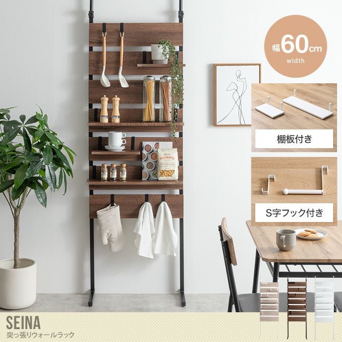 他の画像を見る 【送料無料】Seina セイナ 幅60 突っ張り棚 壁面収納 ウォールラック つっぱり棚 シェルフ スリム 木目調 韓国 インテリア 北欧 モダン 一人暮らし コンパクト 賃貸 省スペース 棚付き S字フック ディスプレイ リビング オーク 販売価格 ¥ 9,999 税込 在庫切れ 送料込 カートに入れる お気に入りに登録する