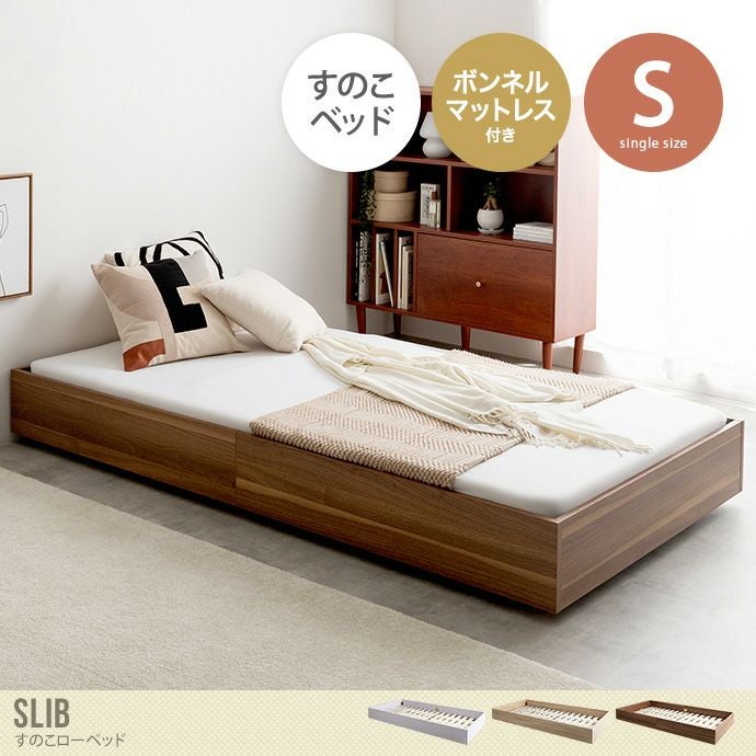 他の画像を見る 【送料無料】Slib スリーブ 幅100.6 シングル 【ボンネルコイルマットレス付き】 ベッド ベッドフレーム マットレス すのこベッド ローベッド フロアベッド セット ボンネルコイル スノコ ウッド 木製 通気性 ドロップマット 一人暮らし 寝室 木目 販売価格 ¥ 21,979 税込 送料込 カートに入れる お気に入りに登録する
