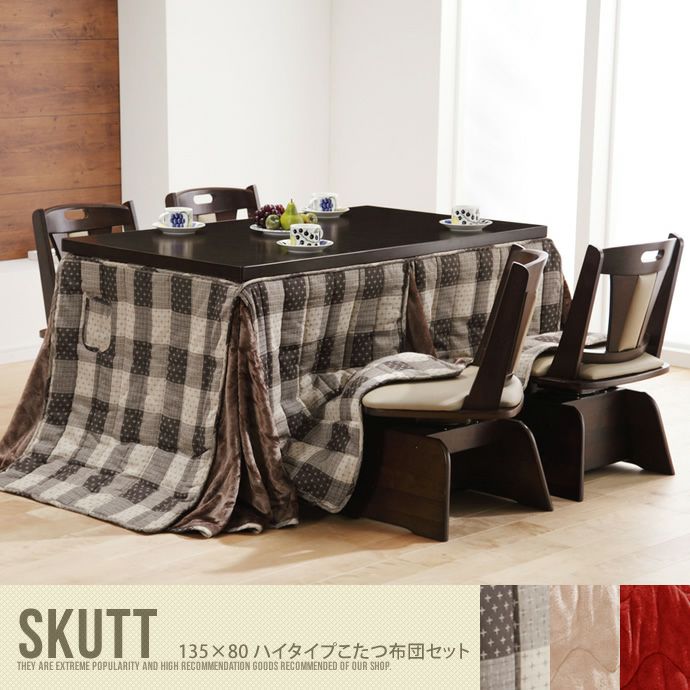 他の画像を見る 【送料無料】Skutt 135×80 ハイタイプこたつ布団セット こたつ 炬燵 布団付き 椅子付き 高さ調節 しじら織り 販売価格 ¥ 153,850 税込 送料込 カートに入れる お気に入りに登録する