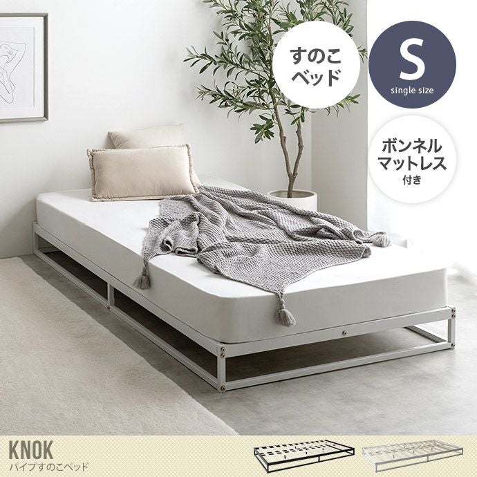 他の画像を見る 【送料無料】Knok ノック 幅97 シングル 【ボンネルコイルマットレス付き】 ベッド すのこ パイプ ボンネルコイル ロー フロア フレーム マットレス付き ヘッドボードなし コンパクト 省スペース 通気性 シンプル 一人暮らし ワンルーム 収納 湿気対策 小さい 販売価格 ¥ 20,979 税込 送料込 カートに入れる お気に入りに登録する