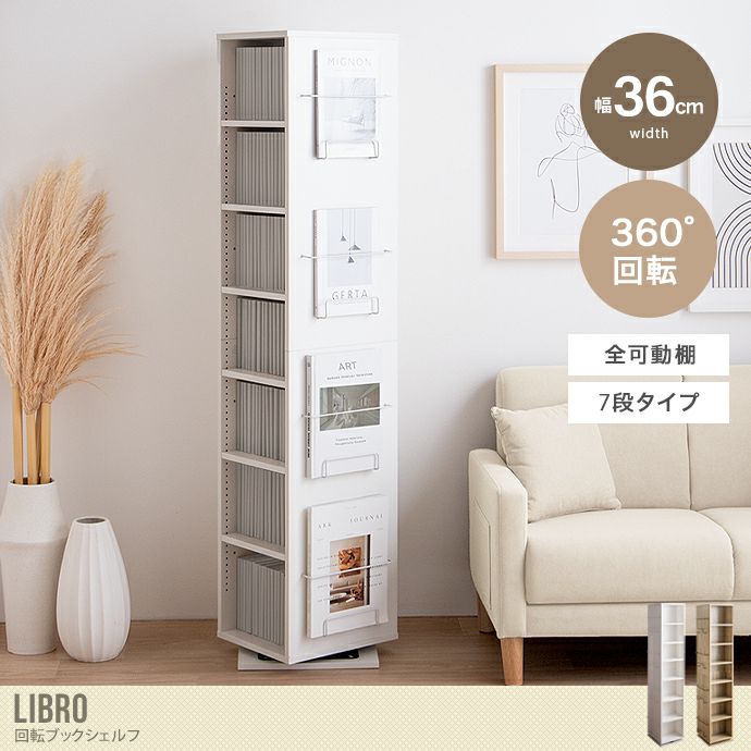 他の画像を見る 【送料無料】Libro リブロ 幅36 本棚 ブックシェルフ 回転ラック 回転本棚 マガジンラック 収納 おしゃれ おすすめ 安い 回転 回転式 スリム コンパクト 大容量 360度 7段 漫画 コミック 雑誌 CD DVD 推し活 高さ155.5 木製 リビング 一人暮らし ホワイト 販売価格 ¥ 11,999 税込 送料込 カートに入れる お気に入りに登録する